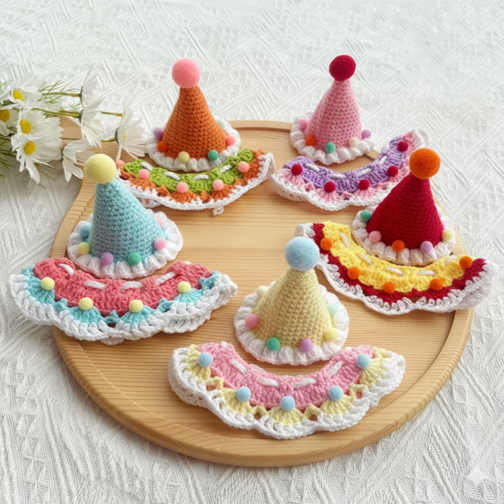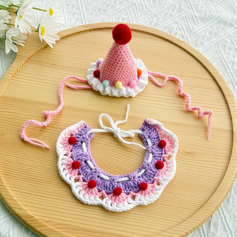 🎉 Crocheted Birthday Set for Pets – Knitted Hat & Scarf Made from Soft Polyester Yarn 🎂